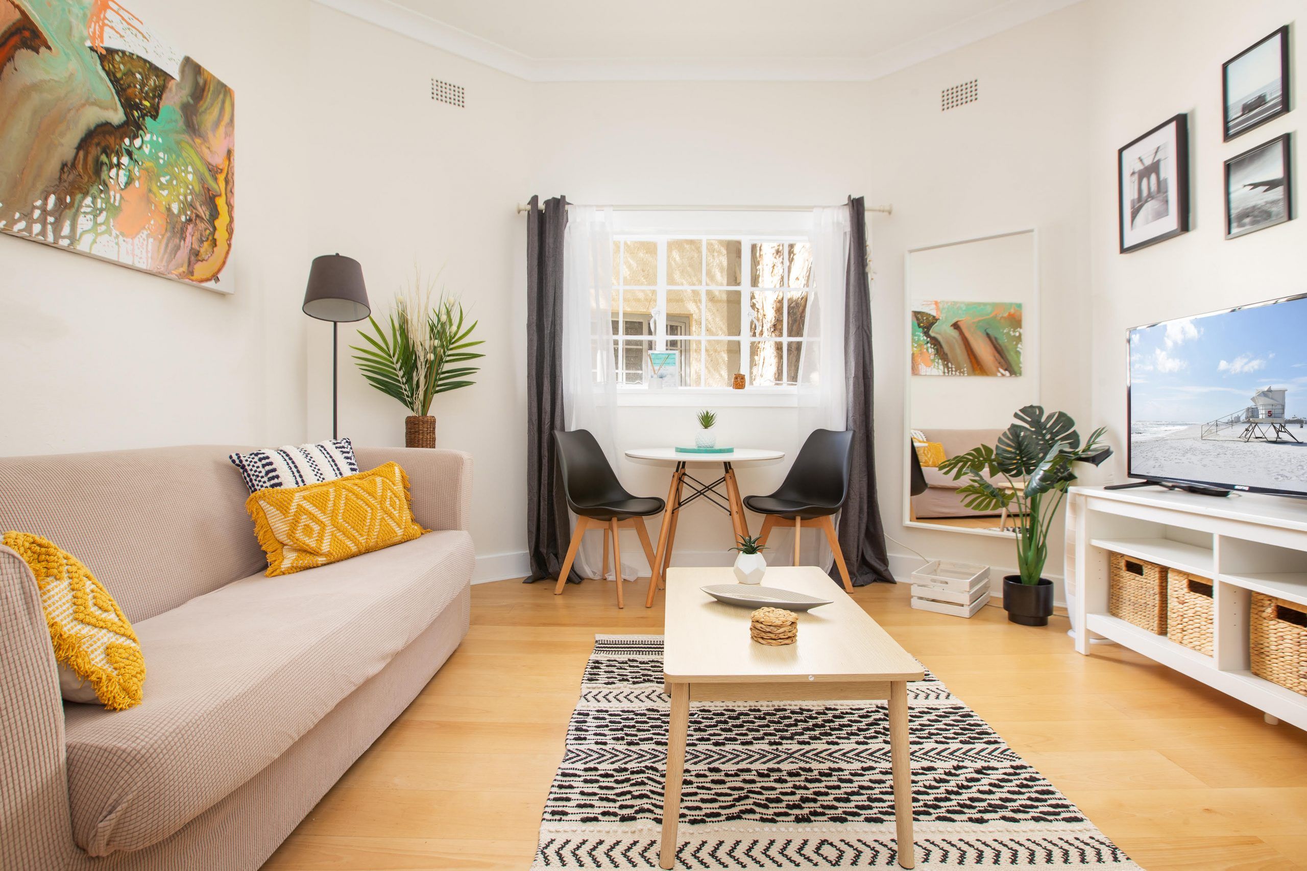 Hidden from the road in an iconic Spanish Mission style building, and surrounded by lush gardens, this fresh and light-filled apartment provides an idyllic beachside abode of peace, privacy and tranquillity. Boasting a prized top floor setting and bathed in natural light, this beach pad offers an easy-care layout enhanced by high ceilings and timber floors. The well-proportioned bedroom enjoys a peaceful, leafy outlook and features picture-rails and a built-in wardrobe. The heritage character continues through the combined living and dining area and separate fresh and airy kitchen that opens to a private rear landing. The modern bathroom is bright and includes an internal laundry.