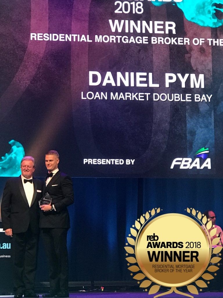 Loan Market Double Bay director Daniel Pym has received the prestigious title of Residential Mortgage Broker of the Year at the Real Estate Business (REB) Awards held Thursday 19 July at The Star, Sydney.