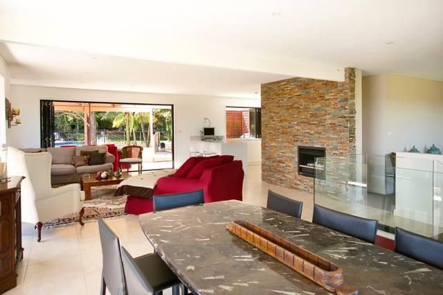Downstairs accommodation comprises 4 bedrooms, 3 bathrooms, and an informal lounge.