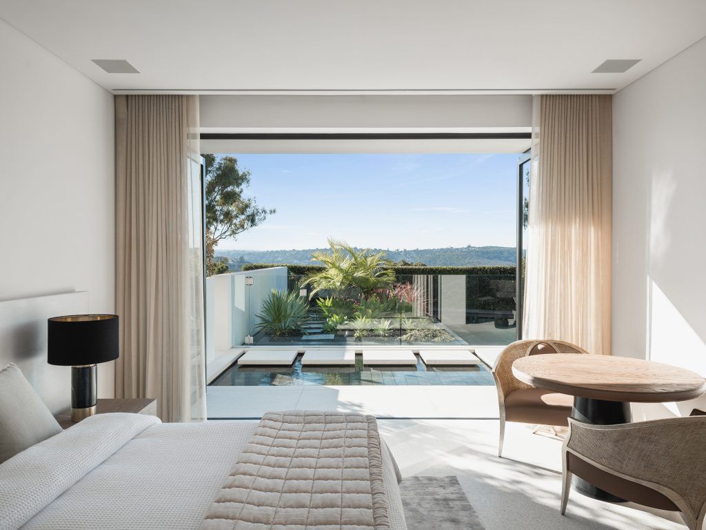 Located on the first floor, annexed from the formal living quarters, are the four main bedrooms & pool terrace which evoke a tranquil resort feeling within a private sanctuary. Framed by sensory luxuries, such as the private sculpture gardens & outdoor water features, each bedroom is served by its own bathroom, dressing room & walk-in wardrobe.