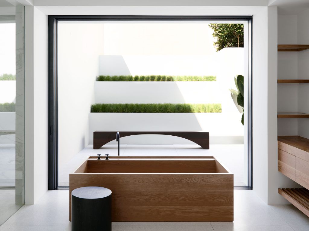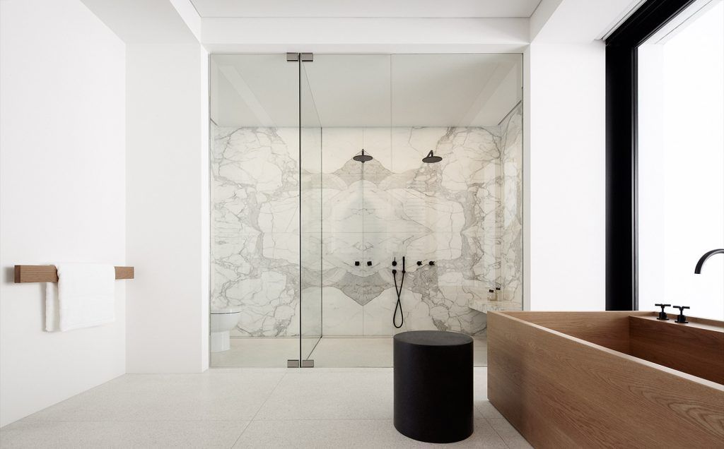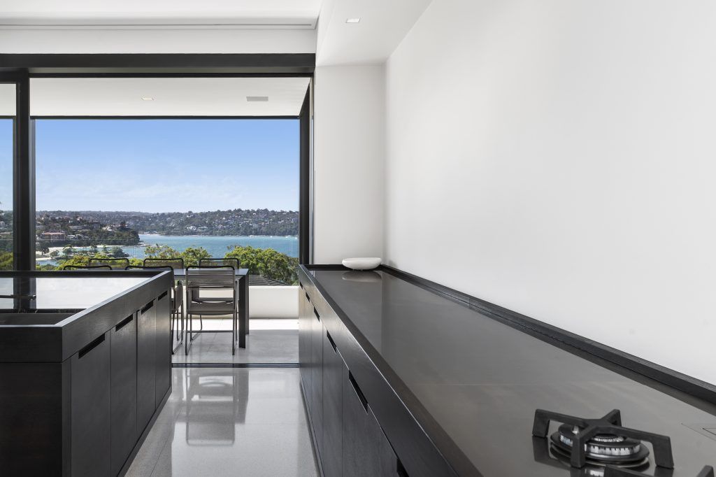 Beautifully crafted marble-topped timber benches define the residence’s unique kitchen while its open plan dining & formal lounge seamlessly integrate with the north-facing terrace to maximise the site’s elevated northern aspect.